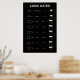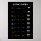 This is a black poster of the logic gate with their corresponding formulas and truth tables.
