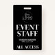 Your Logo Black White All Access Event Staff Badge. Great for fashion shows, concerts, large special events like conferences, concerts, lectures, and can even work for a birthday party or any other party where you want to make your guests feel special. A simple modern, yet elegant, look with a spot to add your company or even logo up top. At bottom is a bold serif font mixed with simple typography, with Event Staff, the event name, date, and 'All Access Pass'. You can change all of the text information and colours of this badge.