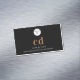 A classic black background with white and golden text. Personalize and add your business logo, monogram initials, name and contact information.