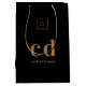 Black background, golden and white text. Personalize and add your logo, monogram initials and name.