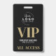 VIP Your Logo Elegant Black Gold Special Event Badge. Great for fashion shows, concerts, large special events like conferences, speakers, and can even work for a birthday party or any other party where you want to make your guests feel special. A simple modern, yet elegant, look with a spot to add your company or even logo up top. At bottom is a bold serif font mixed with simple typography, with VIP, the event name, date, and 'All Access Pass'. You can change all of the text information and colours of this badge.