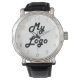 Add your own business logo to this watch. White background. Perfect for promoting your business and your brand. Faux gold, golden clock face numbers as an overlay to your business logo.
