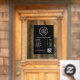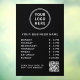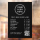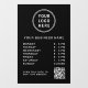 Modern black window cling sign for your business. Upload your logo and QR code for customers to scan for a list of your products, services, prices or other information. Add your business name, hours of operation or other text in simple white typography.