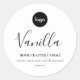 Custom logo candle label minimalist white sticker. Personalize this candle product label template with branding, scent type and product details.