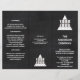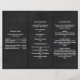 Utilisez ce modèle de brochure de liste de prix triplé en faux tableau noir pour concevoir votre propre menu de produits et de services pour commercialiser votre entreprise à des clients potentiels. Le tableau noir et blanc simple comprend deux modèles d'image pour télécharger votre logo, ou une photo si vous préférez, pour promouvoir parfaitement votre entreprise. Les modèles textuels des deux côtés de cette brochure triplée dans une police blanche classique sur l'arrière - plan rustique faux tableau noir avec des bordures noires minces permet de customiser facilement cette liste de prix conception exactement comment vous le voulez. La beauté de ce design simple est que vous pouvez personnaliser selon votre entreprise. Si vous êtes propriétaire d'un restaurant ou d'un bar, vous pouvez créer un menu de liste de prix avec le logo de votre entreprise pour l'utiliser sur place et de se brancher dans des sacs de commande à emporter. La présentation polyvalente est parfaite pour les entreprises de services qui utiliseront ce modèle de brochure de prix pour annoncer des biens et des services, avec des prix, de l'interne au départ avec les clients lors des réunions d'estimation ou pour faire de la publicité pendant les salons. ***NOTE : CES BROCHURES DE LISTE DE PRIX N'EXPÉDIENT PAS D'EXPÉDITION PRÉFOLDÉE. Vous devrez plier vous-même ces faux dépliants de tableau, mais comme toutes les petites entreprises le savent, c'est à cela que servent les amis et la famille !
