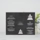 Use this tri-fold price list brochure template in faux black chalkboard to design your own menu of goods and services to market your business to prospective customers. The simple black and white blackboard layout includes two picture image templates for uploading your logo, or a photo if you prefer, to perfectly promote your business. Text templates on both sides of this trifold brochure in a classic white font on the rustic faux chalkboard background with thin black borders makes it easy to customize this price list design exactly how you want it. The beauty of this simple design is you can personalize depending on your business. If you own a restaurant or bar, you can create a pamphlet price list menu with your company logo for use on site and to tuck into take out order bags. The versatile layout is perfect for service companies who will use this price brochure template to advertise goods and services, with prices, anywhere from in-house to leaving with customers during estimate meetings or to advertise during trade shows. ***NOTE: THESE PRICE LIST BROCHURES DO NOT SHIP PRE-FOLDED. You will need to fold these faux chalkboard brochures yourself, but as every small business knows, that's what friends and family are for!