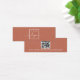 Mini carte d'affichage de produit en terre cuite marron avec modèle de logo personnalisé centré et code QR sur le dos. Les repères d'oreille peuvent être ajustés en ajoutant et en enlevant des espaces dans le champ modèle, et en déplaçant l'élément entier dans l'outil de conception.