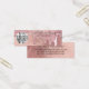Cette carte de présentation de logo pour l'entreprise de petites boucles d'oreilles ou de créoles girly et glamour est le moyen idéal pour styliser votre emballage et ajouter votre propre touche personnelle et votre personnalité. Elle présente de fausses gouttes de paillettes épaisses rose doré brillant imprimées sur un fond de papier métallisé rose doré. La typographie est une élégante écriture cursive avec une police à empattement moderne pour correspondre. C'est chic, joli, unique et luxueux ; le moyen idéal pour faire la publicité de votre entreprise et styliser votre matériel de marketing et de publicité pour vos clients. (les trous pour les boucles d'oreilles sont uniquement des marqueurs imprimés, la perforation doit être effectuée par le client)