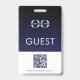 Gardez vos invités facilement identifiables et en sécurité grâce à ce badge invité personnalisé. Le badge présente un design bleu marine et blanc élégant avec le mot « Invité » affiché bien en vue dans une police simple. Ajoutez votre propre logo pour une touche personnelle, et incluez un code QR pour un accès facile à des informations supplémentaires ou à une visite virtuelle. Le texte « Veuillez porter le badge en tout temps » garantit que vos invités sont toujours facilement reconnaissables et contribue à maintenir la sécurité dans votre établissement.