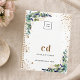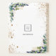 Eucalyptus verdure et faux feuillage doré. Arrière - plan blanc élégant. Personnalisez et ajoutez le logo de votre entreprise, les initiales monographiques, le nom et un texte.
