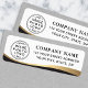 Le logo personnalisé renvoie des étiquettes d'adresse avec un dégradé de couleur noir et or (imprimé, pas de papier peint), une bordure incurvée et des champs de modèle pour le nom et l'adresse de votre entreprise.