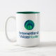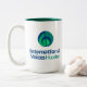 15 oz tasse à deux tons avec logo IVH et mission. Intérieur vert chasseur.