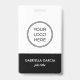 Présentez un look élégant et professionnel avec ce badge d'identification d'employé moderne en noir et blanc d'entreprise. Doté d'un design épuré et minimaliste, ce badge peut être entièrement customisé avec le logo de votre entreprise, le nom de l'employé, le titre de l'emploi, les coordonnées et un code QR pour un accès rapide ou une vérification. Parfait pour les événements d'entreprise, l'utilisation quotidienne du bureau ou les laissez-passer de visiteur, ce badge d'identification élève votre marque tout en gardant les choses simples et élégantes. Cliquez sur le bouton bleu "Personnaliser" pour ajouter vos détails. Design par Ana Garza/Kardz Studio Designs. Si vous avez des questions, n'hésitez pas à me contacter par l'intermédiaire du Conversation Zazzle.