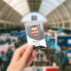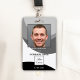 Un badge photo avec un design noir et blanc avec un espace pour votre photo et logo personnalisé. À l'arrière, vous pouvez ajouter un code à barres personnalisé ou un code QR ainsi que des textes supplémentaires ou supprimer les modèles. Vous pouvez également copier et coller le design et les photos de l'avant vers l'arrière si vous le souhaitez.