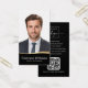 Modernes, verticales, noires et dorées (dégradé de couleur imprimé, pas de papier peint réel) cartes de visite de bordure incurvée avec votre nom et votre titre sur l'avant et des champs de modèle personnalisables pour vos coordonnées, logo et code QR sur l'arrière. Vous pouvez modifier les couleurs des arrière - plans et des polices, déplacer et redimensionner les éléments à l'aide de l'outil de conception.