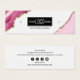 Cartes d'affichage modernes pour oreilles en stud ou en cerceau, avec un arrière - plan blanc immaculé avec des bords en agate rose et or, le logo de votre entreprise, les icônes de médias sociaux qui peuvent être enlevées, et les détails de votre entreprise.