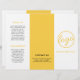 Brochure triplée professionnelle et moderne avec un design simple mais élégant en jaune et blanc. Le panneau avant a votre logo et votre nom commercial. Le panneau arrière contient vos coordonnées et le panneau intérieur comporte deux en-têtes et des zones de texte. Utilisez le modèle pour ajouter des informations sur votre entreprise sur les panneaux extérieurs et un menu liste de prix / service dans le panneau central. CONSEIL DE CONCEPTION : Vous pouvez modifier le texte et l'arrière - plan à n'importe quelle couleur en cliquant sur le bouton "personnaliser".