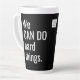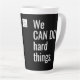 Logo promotionnel Latte Mug Business No Minimum. Nous Pouvons Faire Des Choses Dures Citer Le Logo De L'Entreprise Latte Mug. Étendez-vous dans une mer de tasses à café avec votre tall tall mug ! Personnalisé avec votre entreprise ou logo de petite entreprise ou d'entreprise ou pour votre équipe, équipe sportive ou groupe bénévole sans but lucratif. Typographie moderne en lettrage blanc sur arrière - plan noir. Un cadeau parfait pour vos équipes ou en tant que produit de marketing promotionnel ou un cadeau pour vos clients, clients ou prospects. Citation inspirante des deux côtés. Votre logo entre eux. Le logo peut être supprimé si vous le souhaitez. Faites-leur savoir votre équipe CAN ! Step by Step Inspiration Series disponible exclusivement sur Zazzle à l'adresse zazzle.com/store/KrisHarty, conçu par le designer international Kris Harty. © 2020 Kris Harty Inspiration pas à pas