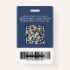 Modern and professional dark blue employee name badge featuring their photo, name and position, and your business or organization's logo. On the reverse side, add any additional information and optional QR and bar codes.