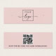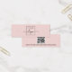 Light blush pink earring mini product display card with centred custom logo template and QR code on the back. The earring guides can be adjusted by adding and removing spaces in the template field, and by moving the whole element in the design tool.