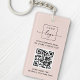 Keychain with your custom logo, QR code and custom text on a light blush pink or custom colour background. Change fonts and font colours, move and resize elements with the design tool.