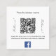 Transparent background, add your brand colour in the design tool. Personalize and add your business name, your own qr code to your Facebook account and a text. With the text: Follow us!