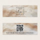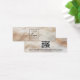 Earring mini product display card with centred custom logo template and QR code on a marble look background. The earring guides can be adjusted by adding and removing spaces in the template field, and by moving the whole element in the design tool.
