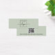 Mini carte d'affichage de produit avec modèle de logo personnalisé centré et code QR sur le dos. Les repères d'oreille peuvent être ajustés en ajoutant et en enlevant des espaces dans le champ modèle, et en déplaçant l'élément entier dans l'outil de conception.