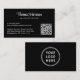 Elegant professional black business card with your name showcased in a bold stylish white script and your title and contact information (such as email, telephone numbers, firm name and mailing address) in clean, modern white lettering. Input a URL address to create a scannable QR code linked to your website, social media profiles, or any other platform that showcases your work, making it easy for others to explore your expertise. Upload your logo on the back or leave blank.