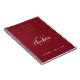 A red background. Personalize and add your business logo, monogram initials, name and a title. Golden and white letters.