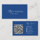 Simple white on blue logo name script hair makeup qr code with a brushed script typography add your business photo . Add your social media. With an elegant signature script font, all the colours are editable , add your logo.Move the letters to create your logo.