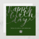 Stylish modern two side print clean glamourous Square Business Happy Birthday Greeting Card featuring simulation of faux silver foil hand lettering script text on a chic forest green background. This colour can be changed to any other. Please note that the silver in this design is a flat colour grey print and is not an actual metallic foil. Perfect combination of elegance and formal professional business luxury with a warm feel. Change the "your logo here" image with your logo or remove it if you want to use it without a logo. Don’t forget to customize the front side and back text as well.
