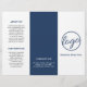 Brochure triplée professionnelle et moderne avec un design simple mais élégant en bleu marine et blanc. Le panneau avant a votre logo et votre nom commercial. Le panneau arrière contient vos coordonnées et le panneau intérieur comporte deux en-têtes et des zones de texte. Utilisez le modèle pour ajouter des informations sur votre entreprise sur les panneaux extérieurs et un menu liste de prix / service dans le panneau central. CONSEIL DE CONCEPTION : Vous pouvez modifier le texte et l'arrière - plan à n'importe quelle couleur en cliquant sur le bouton "personnaliser".