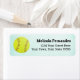 Étiquette de adresse de softball pour filles, femmes, dames et fans. softball jaune sur arrière - plan bleu clair avec nom et adresse personnalisés.