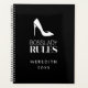 Planificateur annuel personnalisé Stiletto Logo Boss Lady règne en maître Noir et Blanc... Offrez-vous ou offrez à une amie patronne un planificateur annuel personnalisé en noir et blanc élégant avec le logo emblématique du stiletto Boss Lady Rules au-dessus du nom de l'entrepreneur et de l'année du planificateur. Vous pouvez facilement modifier le nom et l'année sur le modèle de personnalisation.