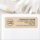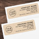 Le logo personnalisé renvoie des étiquettes d'adresse avec votre logo personnalisé et cinq lignes de texte sur un arrière - plan en papier Kraft marron clair (image imprimée).