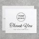 Elegant business thank you card with custom logo or other image on the front and custom text and company contact information on the back. You can change background colour, fonts and font colours with the design tool