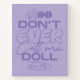 Own your power with Lola's quote! This bold design features Lola Bunny's silhouette alongside the iconic "Don't Ever Call Me Doll" statement, celebrating her strength and independence. The "Est. 1996" detail adds a touch of nostalgia. Personalize your Zazzle gear – from apparel to accessories – with this empowering artwork. Show off your love for the unapologetically confident Lola Bunny and make a statement with this unique design!