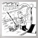 Lollipop Man is Fishing in the Canal, using his lollipop sign as a fishing rod. Cartoon showing a lollipop man, crossing guard, crosswalk attendant, or school road patrol