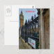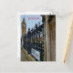 A beautiful view of Bridge Street in London with the Elizabeth Tower in the background printed on a postcard.