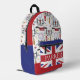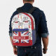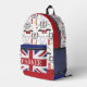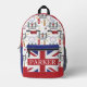 London, England pattern with English elements such as phone booth, double decker bus, London Bridge, the London Ferris Wheel. Union Jack Flag motif on front pocket. Please note that colours are not official colours--they have been modified to coordinate with the colours in the pattern. Composite design by Holiday Hearts Designs (rights reserved).