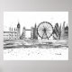 London, United kingdom, England, watercolor poster. Hand painted by Monika Howarth. Modern, black and white, vintage poster.