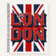 London Flag spiral blank sketchbook illustrates british flag and colours in the background with 3D custom Typography for those that love visiting the heart of England, souvenirs, tourism or dream of going there one day. The imagery of the flag to signify the patriotism. Created with one-of-a-kind custom lettering and illustration for those who just love Unique and Novelty Styles! Designed by Katrina Sutton.