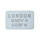 Latitude and longitude map coordinates for London, England in modern urban font