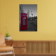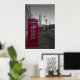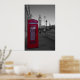 Red telephone box, London black and white looking at Bridge Big Ben and the houses of Parliament by Parliament Square and a Red London transport bus