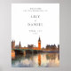 This elegant London skyline watercolor wedding welcome sign can be personalized with your information in modern typography. Designed by Thisisnotme©