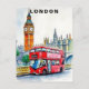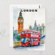 London UK Bus Travel Watercolor Postcard