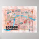 London UK Illustrated Map with Landmarks Poster