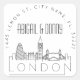 London-themed wedding address stickers in a deco-themed open-lined style and representing the city's unique skyline.