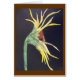 Sunflower reaching out. Shades of yellow, brown, and green on black background, framed with brown. Can also be framed.